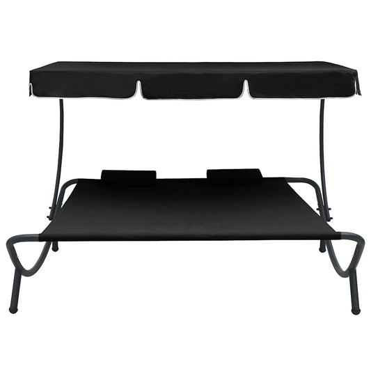 Espreguiçadeira exterior c/ toldo aço e tecido oxford preto