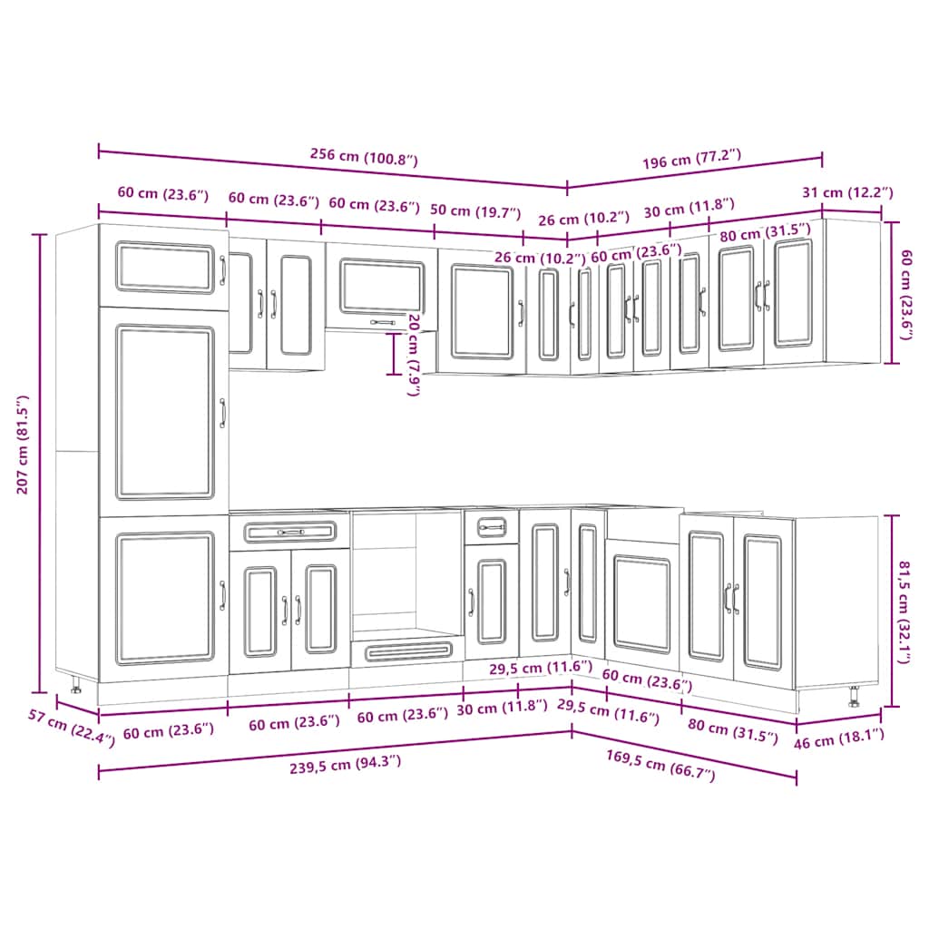 14 peças armário de cozinha conjunto Kalmar carvalho defumado