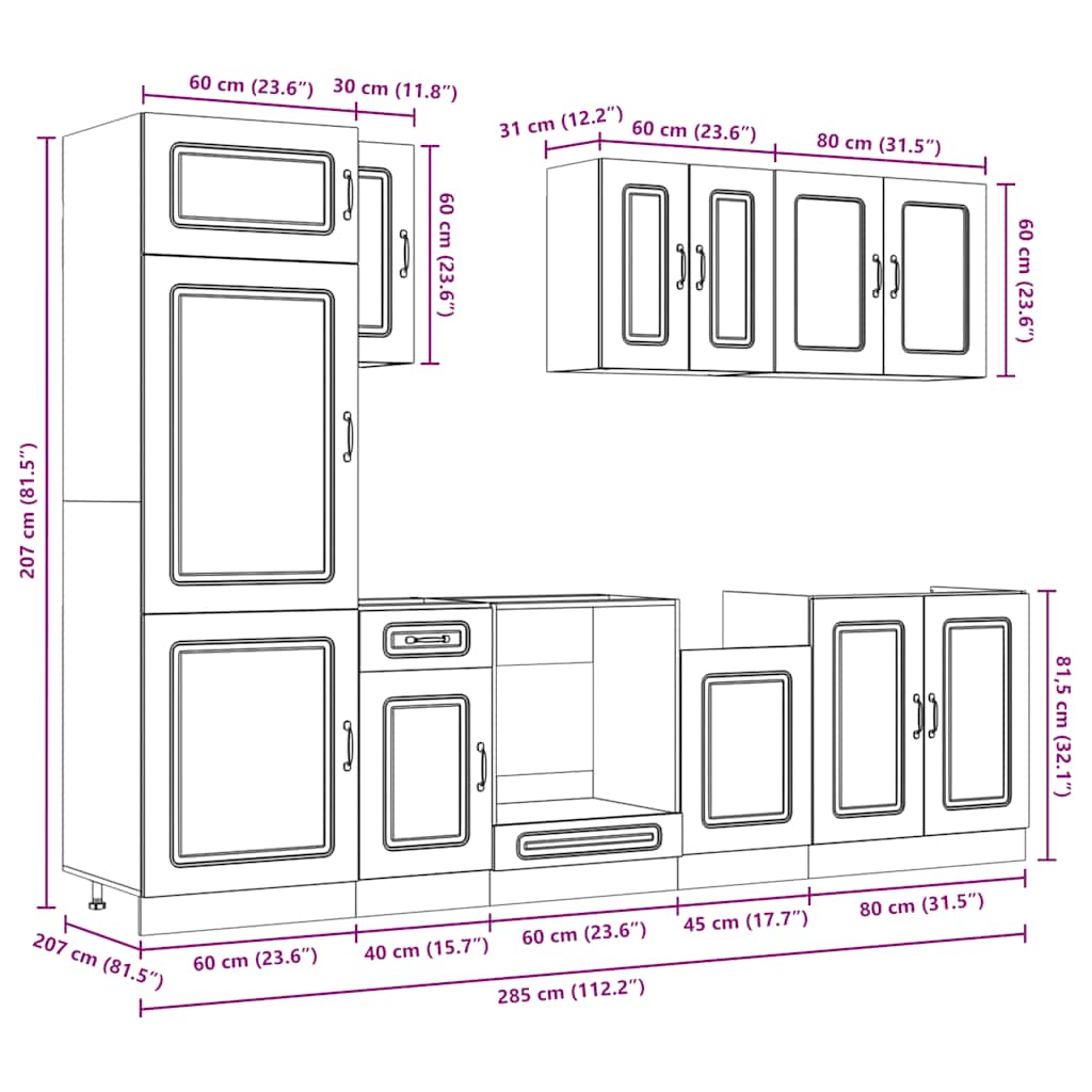 8 peças armário de cozinha conjunto Kalmar madeira velha