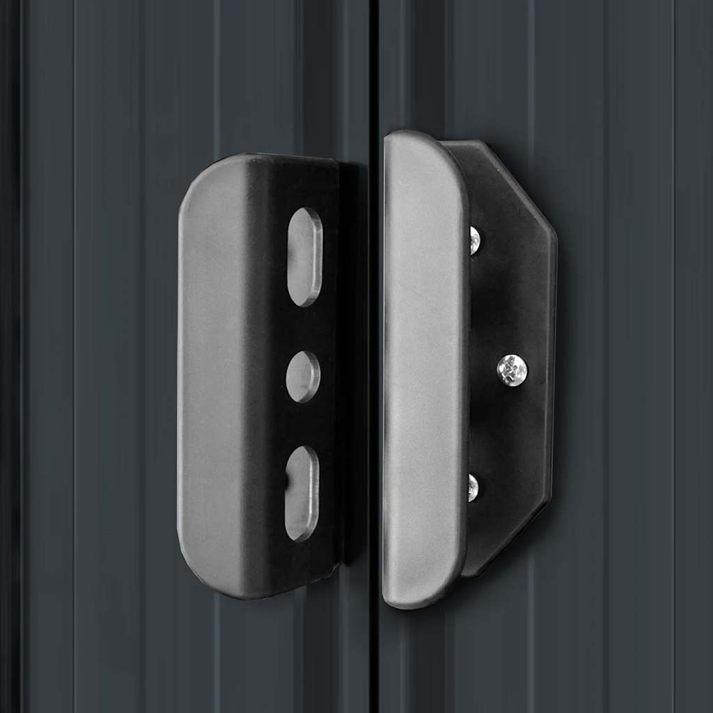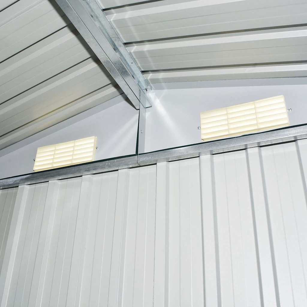 - Estável e durável: A construção em aço galvanizado, juntamente com um acabamento revestido de zinco, o torna durável e forte, evitando corrosão ou danos causados por condições climáticas extremas. Também inclui uma estrutura de piso de aço que adiciona estabilidade e é perfeita para um acabamento de piso de madeira (madeira não incluída).