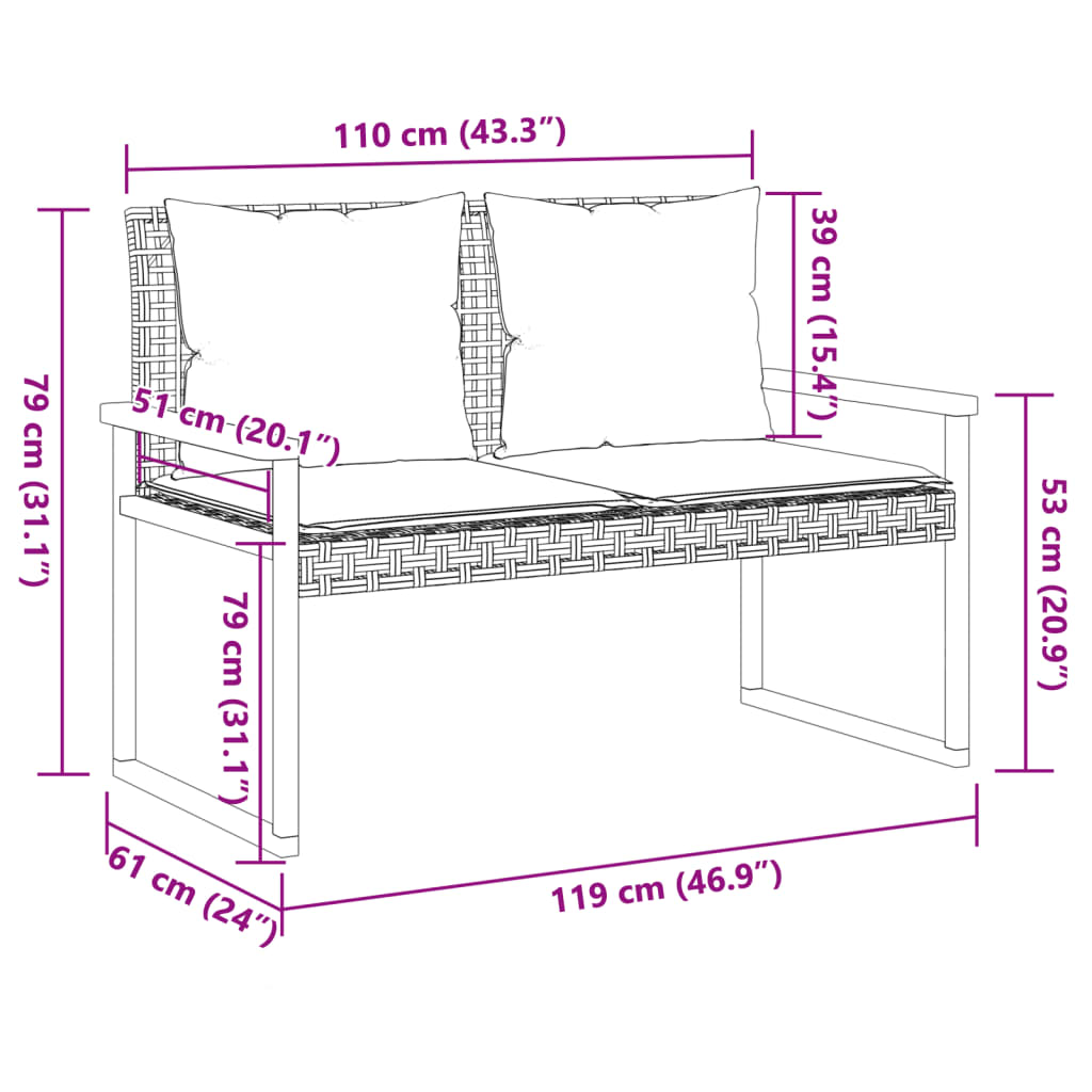 Banco de jardim com almofadão madeira de acácia e vime PE preto