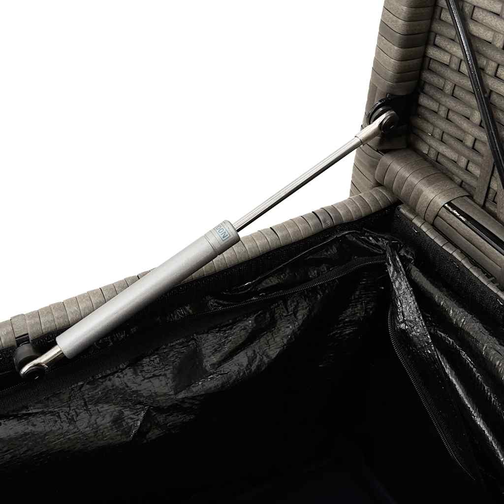 Banco de jardim para arrumação com almofada vime PE cinzento