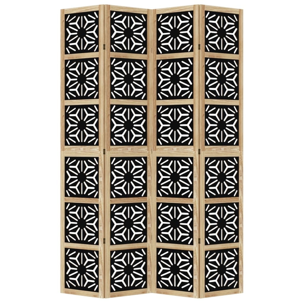 Biombo c/ 4 painéis madeira de paulownia maciça castanho/preto