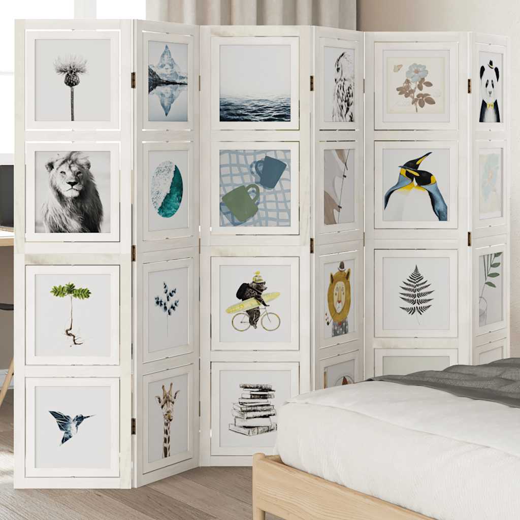Biombo com 6 painéis madeira de paulownia maciça branco