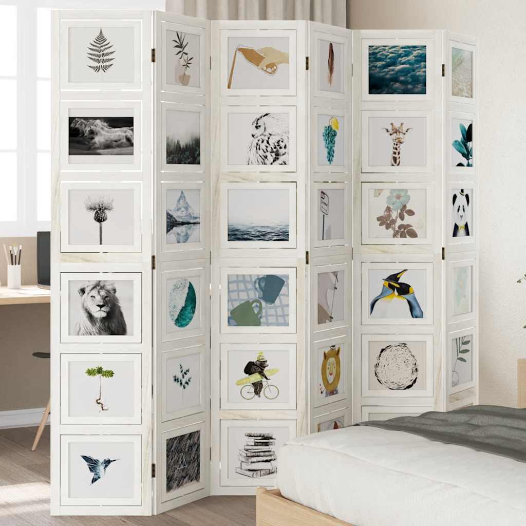 Biombo com 6 painéis madeira de paulownia maciça branco