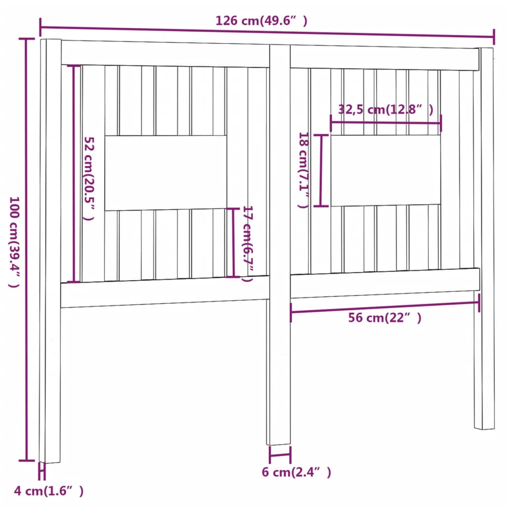 Cabeceira de cama 126x4x100 cm pinho maciço preto