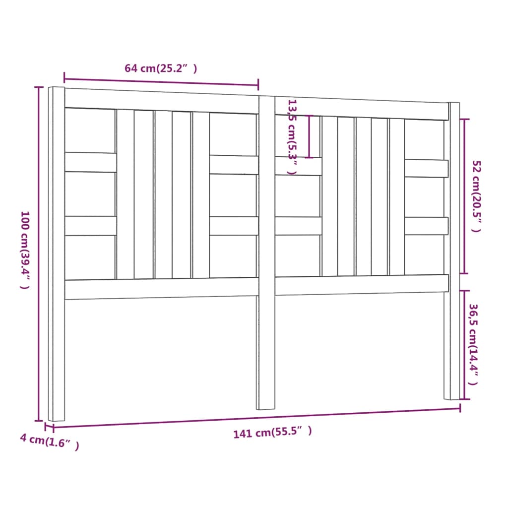 Cabeceira de cama 141x4x100 cm pinho maciço cinzento