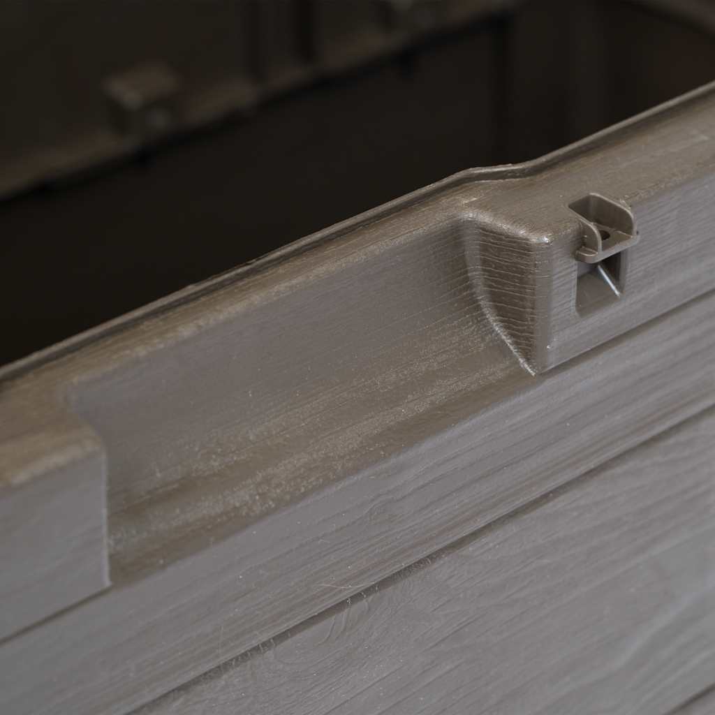 - Design intemporal: o design de textura de madeira dá à caixa de arrumação para jardim uma sensação discreta mas intemporal, que se adapta bem em qualquer estilo de decoração.
