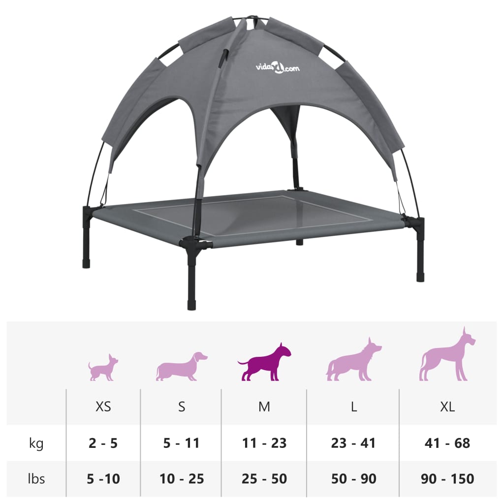Cama para cães com toldo tecido oxford e aço antracite