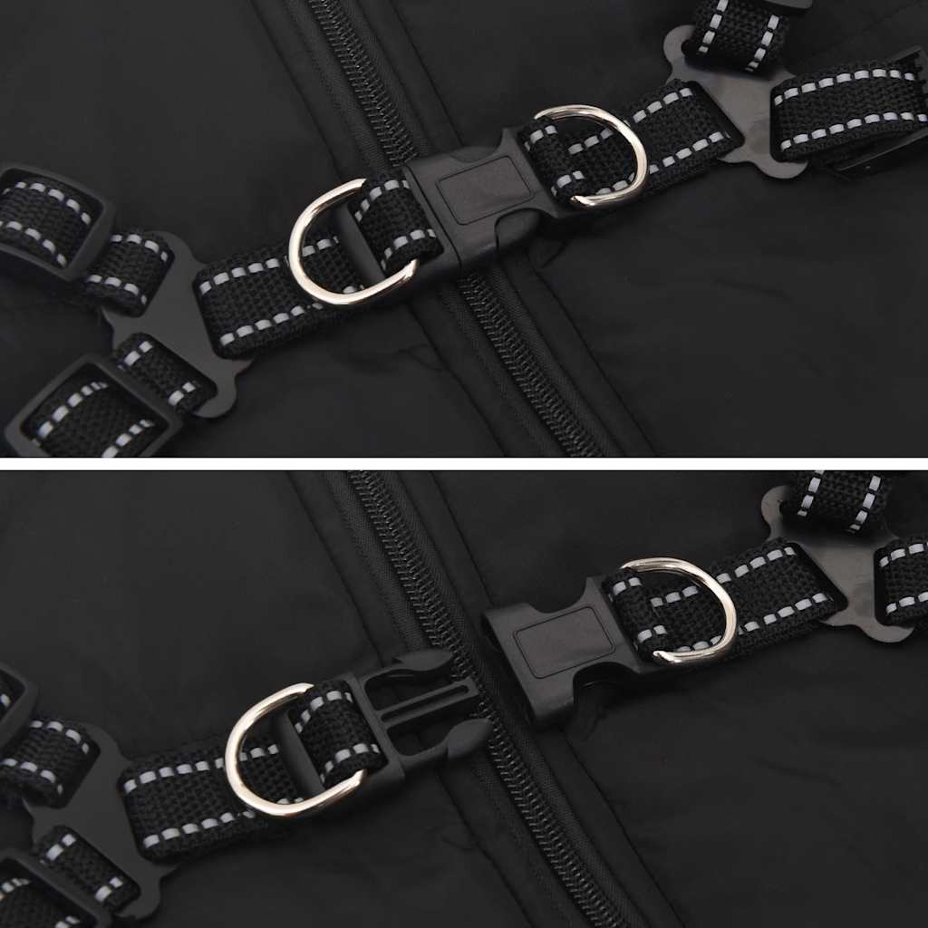- Arnês ajustável: Este casaco de passeio para cães possui alças ajustáveis para um ajuste perfeito, proporcionando o máximo conforto.