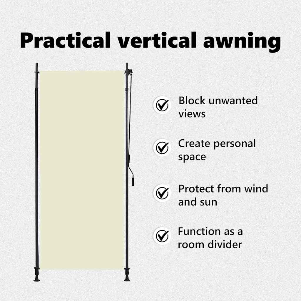 Feito em tecido de qualidade revestido a PA, é resistente ao desbotamento e consegue bloquear o sol, embora permita a passagem do ar. Pode ser facilmente enrolado para cima e para baixo com o sistema de manivela. Este estore vertical é fornecido com dois postes de pé com altura ajustável de 225 a 275 cm. Adapta-se à maior parte das alturas de teto e garante uma fácil instalação.
