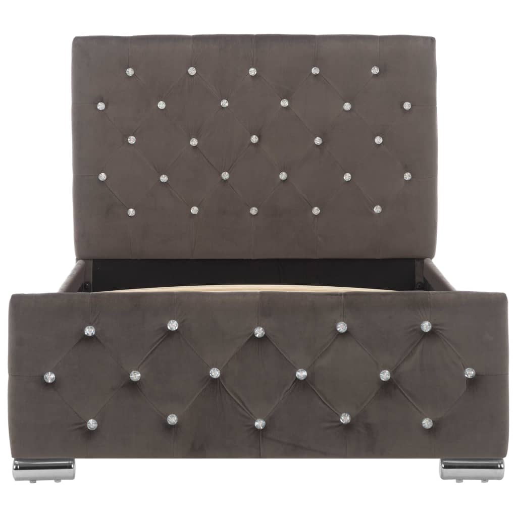 Distinguida por um design discreto e elegante, esta estrutura de cama acrescenta um toque de charme elegante à decoração do seu quarto. Feita em madeira e aço, esta estrutura de cama é extremamente resistente e durável. Os pés metálicos acrescentam uma durabilidade adicional à cama. Para além disso, estofada com veludo durável, a cama exala um aspeto convidativo e é fácil de limpar. Esta estrutura de cama é adequada para um colchão com 90 x 200 cm