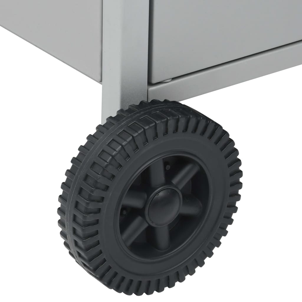 Feito de materiais pesados, o grelhador é muito durável. O armário por baixo fornece um grande espaço para armazenar panelas e utensílios. Graças às 2 rodas resistentes, o grelhador é fácil de movimentar. A entrega também inclui uma tampa de churrasco para proteger o grelhador da chuva e pó.