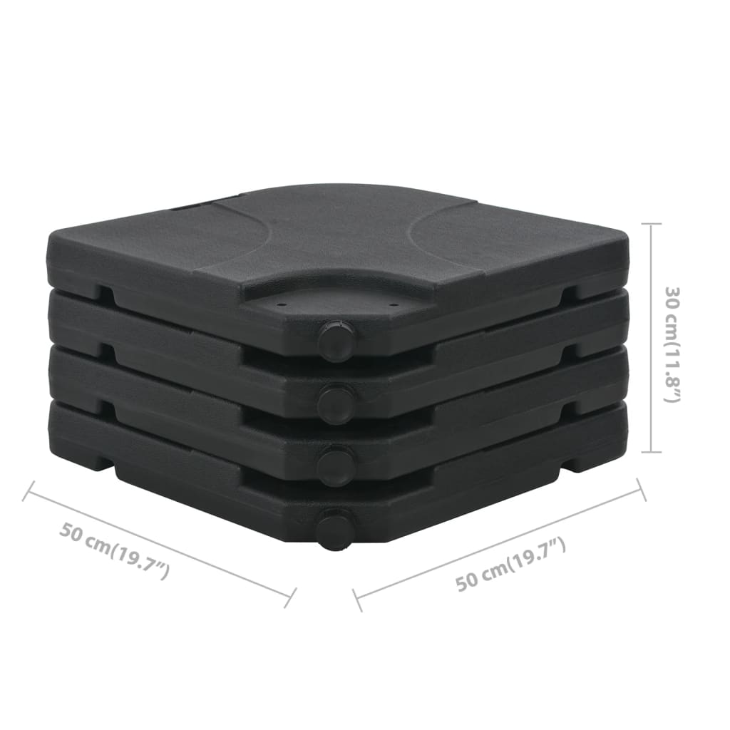 A base do guarda-sol é constituída por quatro partes separadas e pode ser enchida com 60 litros de água ou 80 kg de areia. É ideal para estabilizar guarda-sóis com base cruzada. Esvaziando o enchimento a base do guarda-sol é leve, o que facilita o transporte.