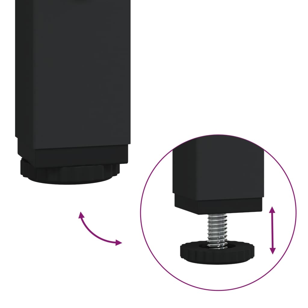 - Pés ajustáveis: os quatro pés ajustáveis com almofadas de plástico mantêm o móvel de apoio equilibrado em superfícies irregulares e aumentam a estabilidade.
