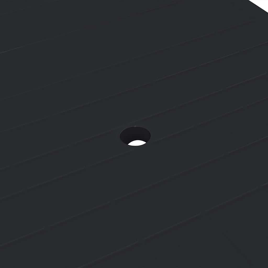 A mesa de jantar para exterior é feita em plástico sólido, o que a torna durável e forte, bem como resistente às intempéries e fácil de limpar. A mesa tem um orifício para que a possa usar com um guarda-sol e ficar refrescado à sombra. A mesa de exterior é também leve e fácil de deslocar.