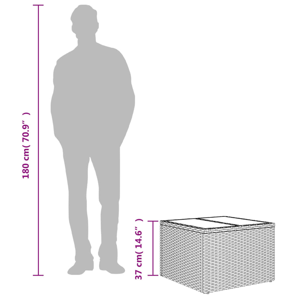 Mesa de jardim com tampo de vidro 55x55x37 cm vime PE bege