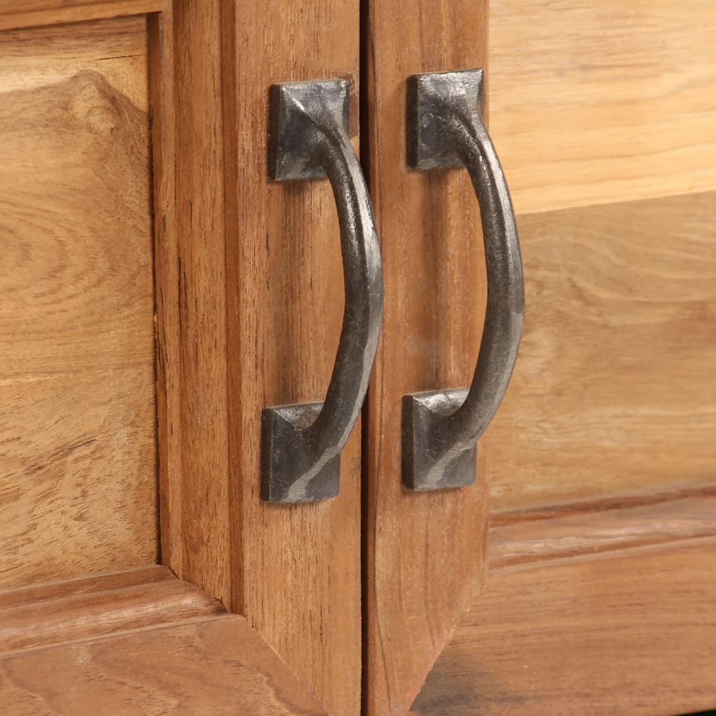 O suporte de TV é feito em teca reciclada que recebeu um belo acabamento polido e lacado, para lhe atribuir um aspeto requintado. Os belos grãos da madeira tornam cada peça de mobiliário única e ligeiramente diferente das restantes. Esta unidade de TV possui uma superfície firme e estável, na qual poderá colocar a sua TV, uma fruteira, um vaso e outros artigos. Este móvel baixo possui um armário e dois compartimentos de armazenamento, que fornecem um amplo espaço para a arrumação de dispositivos e suportes multimédia ou quaisquer outros artigos que queira manter ao seu alcance. A estrutura de aço contribui para a robustez e estabilidade do armário, bem como para o seu estilo industrial. Este artigo já está montado. Não é necessária qualquer montagem.