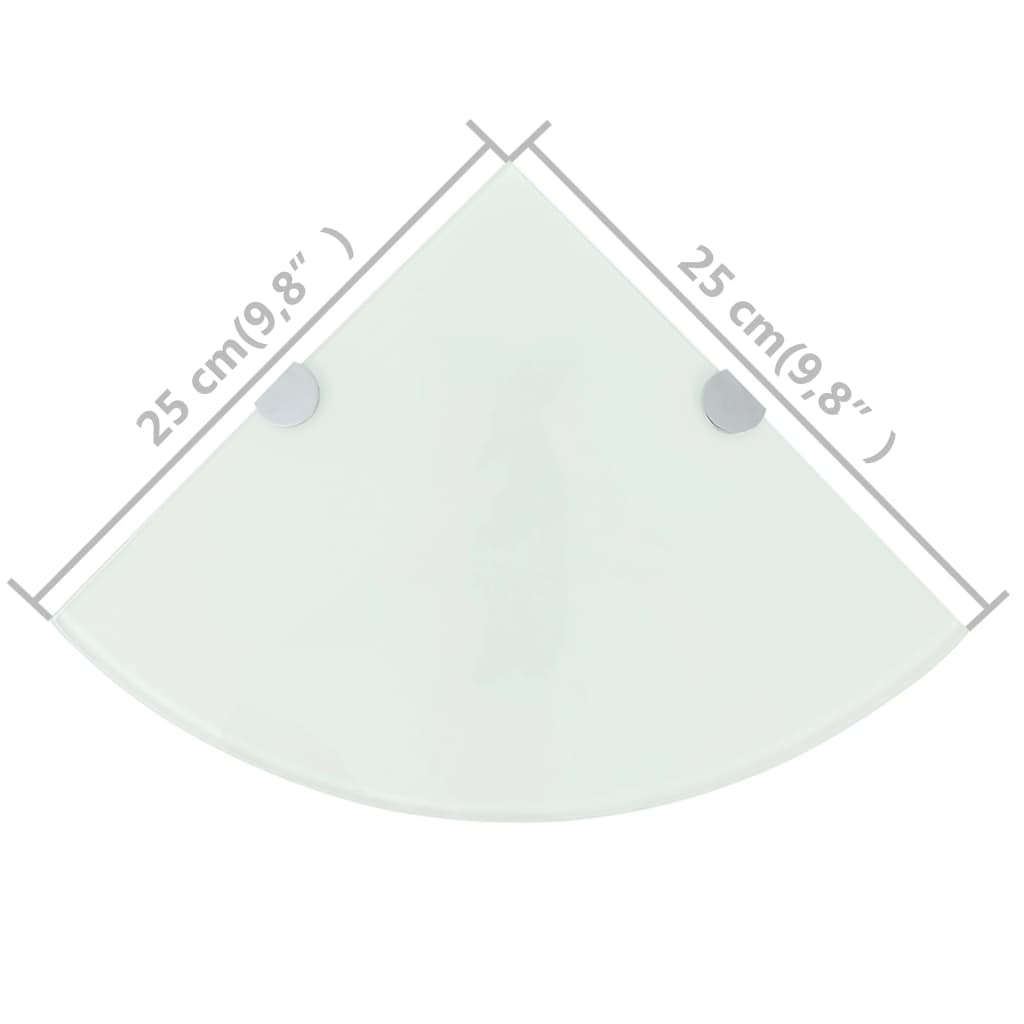 Prateleiras canto 2 pcs suportes cromados 25x25cm vidro branco