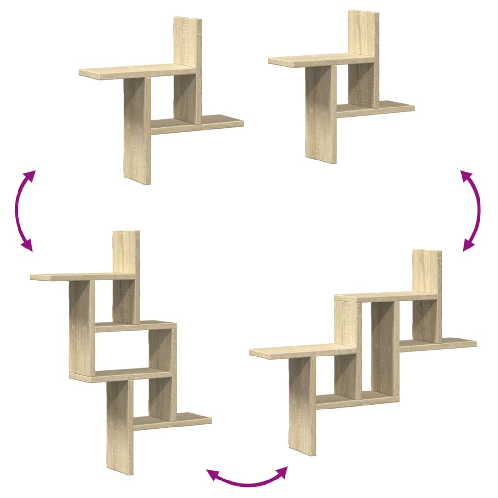 Prateleiras de parede 2 pcs derivados madeira carvalho sonoma
