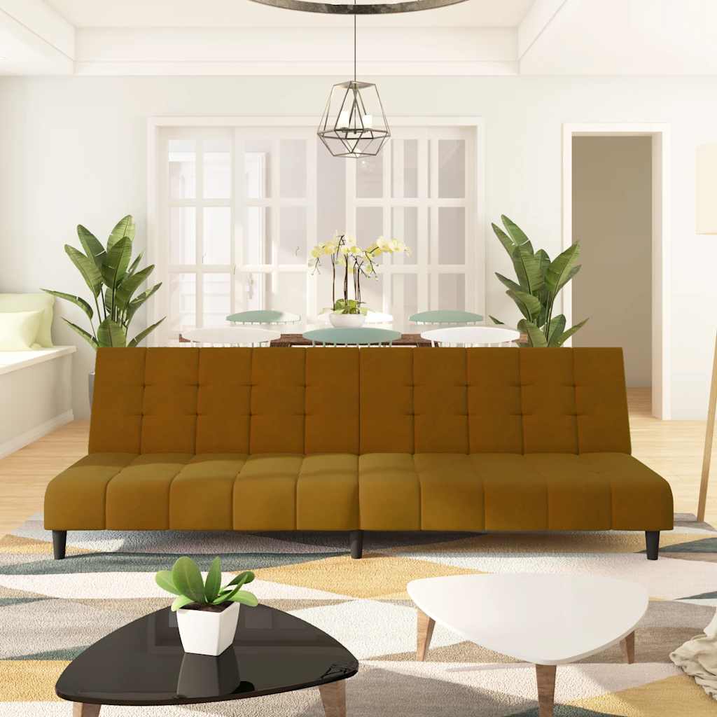 Sofá-cama de 2 lugares veludo castanho