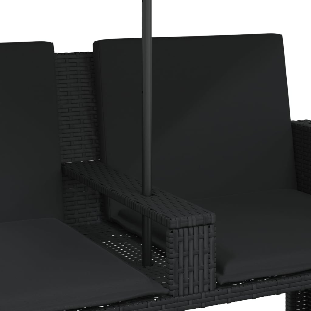 Sofá de jardim 2 lugares com guarda-sol e bancos vime PE preto