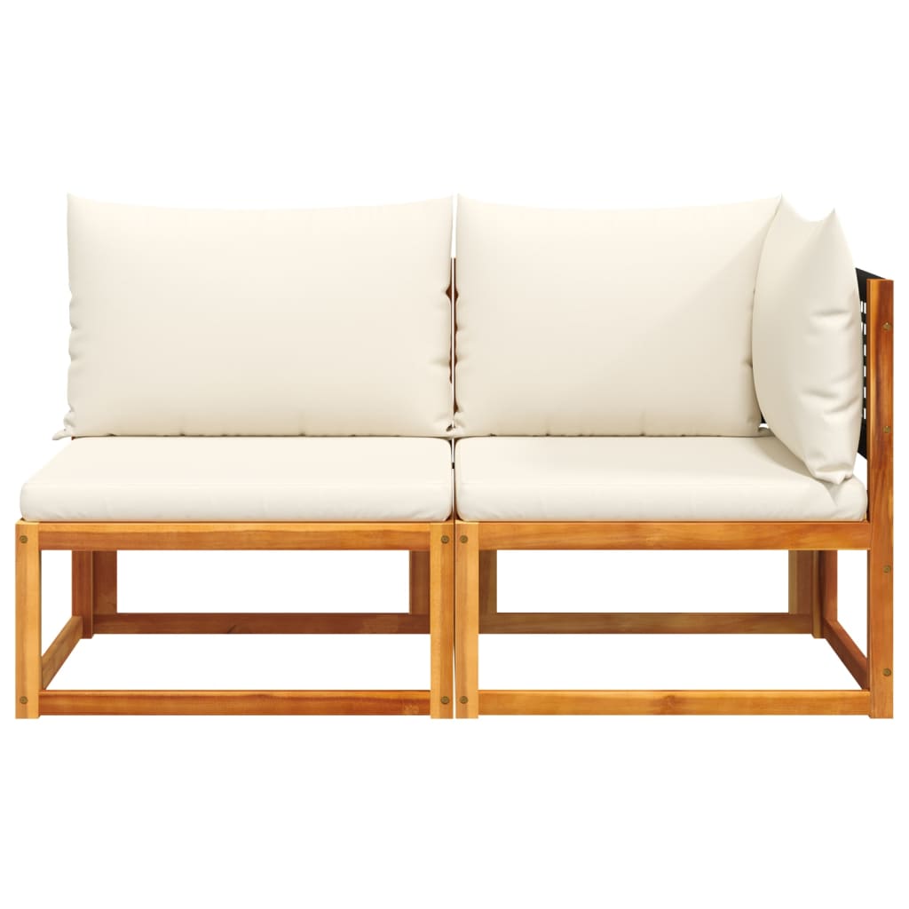 Sofá de jardim vidaXL com almofadas, 2 lugares, madeira de acácia e vime
