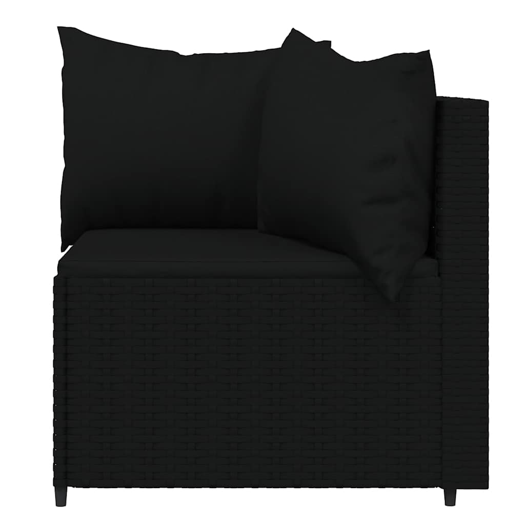 Sofás de canto p/ jardim c/ almofadões 2 pcs vime PE preto