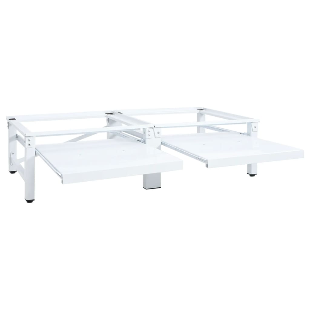 Este suporte duplo é feito de aço forte, o que o torna muito resistente. Cada um pode suportar o peso de uma máquina de lavar ou secar de até 100 kg. Graças às almofadas antiderrapantes, as máquinas de lavar e de secar permanecem estáveis. Uma vez que os pés são ajustáveis em altura, o suporte pode ser ajustado para compensar pisos irregulares. O suporte também possui duas úteis prateleiras extraíveis para um espaço de arrumação extra.