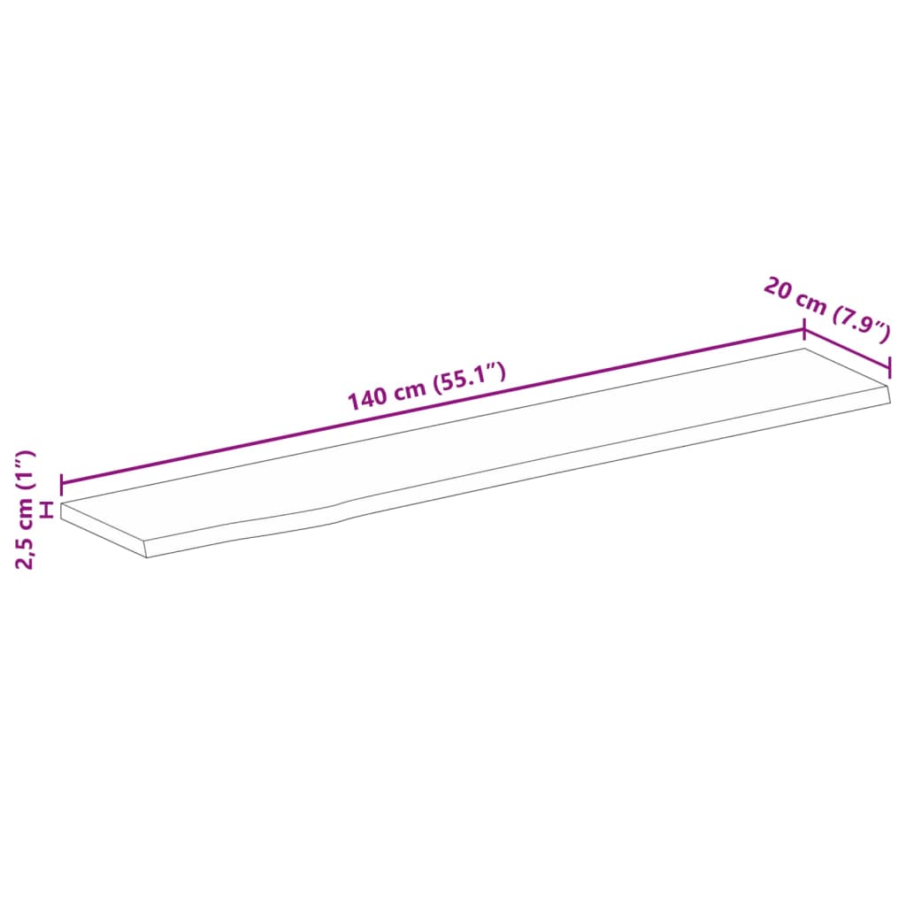 Tampo de mesa borda viva 140x20x2,5 cm mangueira áspera maciça