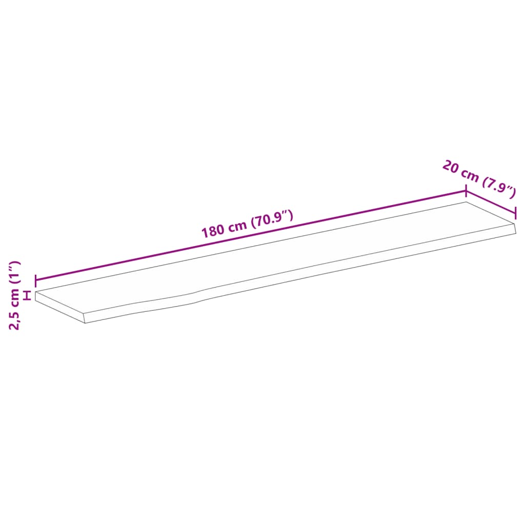 Tampo de mesa borda viva 180x20x2,5 cm mangueira áspera maciça