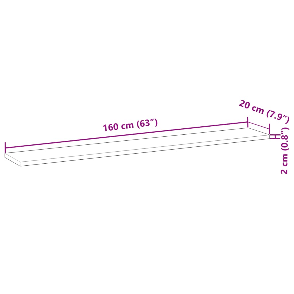 Tampo de mesa retangular 160x20x2 cm madeira de acácia maciça