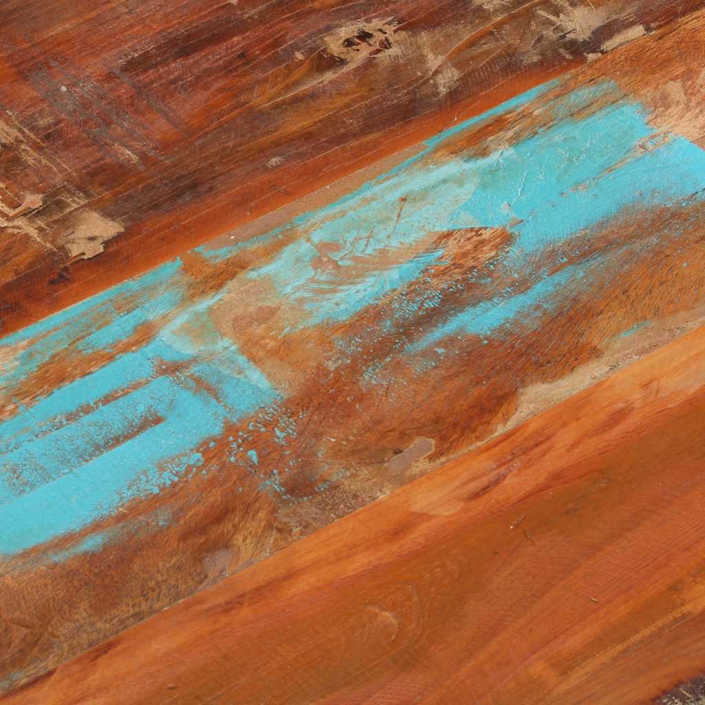 O tampo de mesa suplente é feito com madeira recuperada maciça tropical, resgatada de estruturas antigas tais como armazéns, celeiros, abrigos, moinhos e mansões. A madeira é uma mistura de mangueira, madeira dura, teca, etc., apresentando as características destas diferentes madeiras. Os sinais de desgaste e a visível estrutura granulada atribui a cada peça a sua própria história e aspeto únicos. Cada etapa do processo é realizada com o máximo cuidado, seja o polimento, a pintura ou o envernizamento. O tampo de madeira maciça pode ser usado para mesas de centro, mesas laterais, mesas de bar, mesas de telefone, mesas consola, mesas de cabeceira, prateleiras ou tábua para móveis. Também pode combinar este tampo com quaisquer pernas elegantes, de acordo com as suas necessidades específicas. O tampo da mesa é fácil de limpar com um pano húmido.