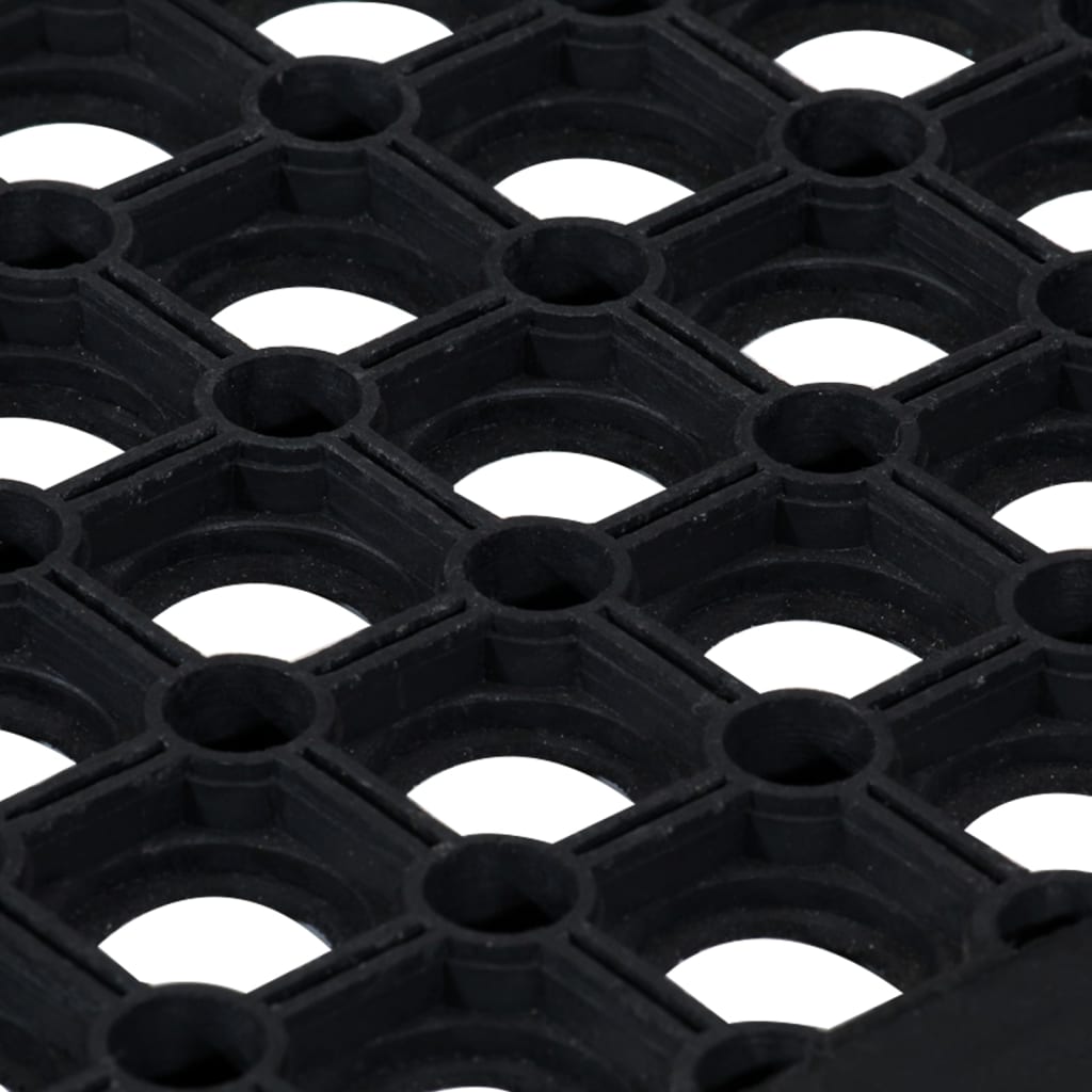 - Fácil de limpar: o design oco permite a passagem de líquidos e detritos, o que faz com que o tapete de borracha possa ser facilmente varrido ou lavado com uma mangueira.