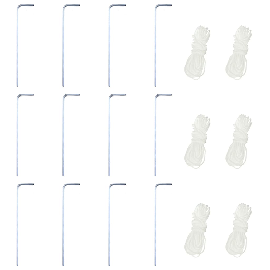 - A entrega também inclui cordas de fixação e pinos para enterrar