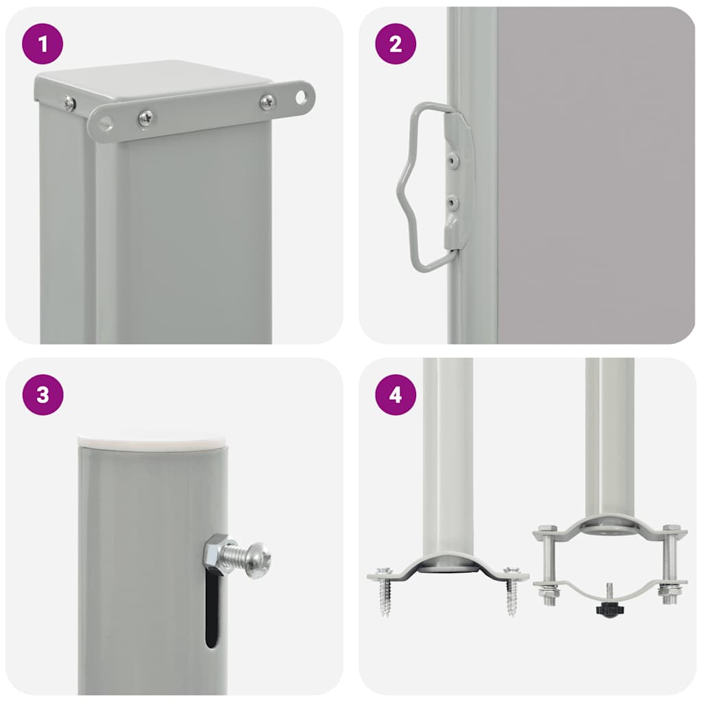 Este toldo lateral simples, porém elegante, cria um recanto aconchegante, proporcionando a privacidade que precisa no seu terraço, pátio ou varanda. Também pode ajudar a proteger as pessoas do vento e do sol baixo.
