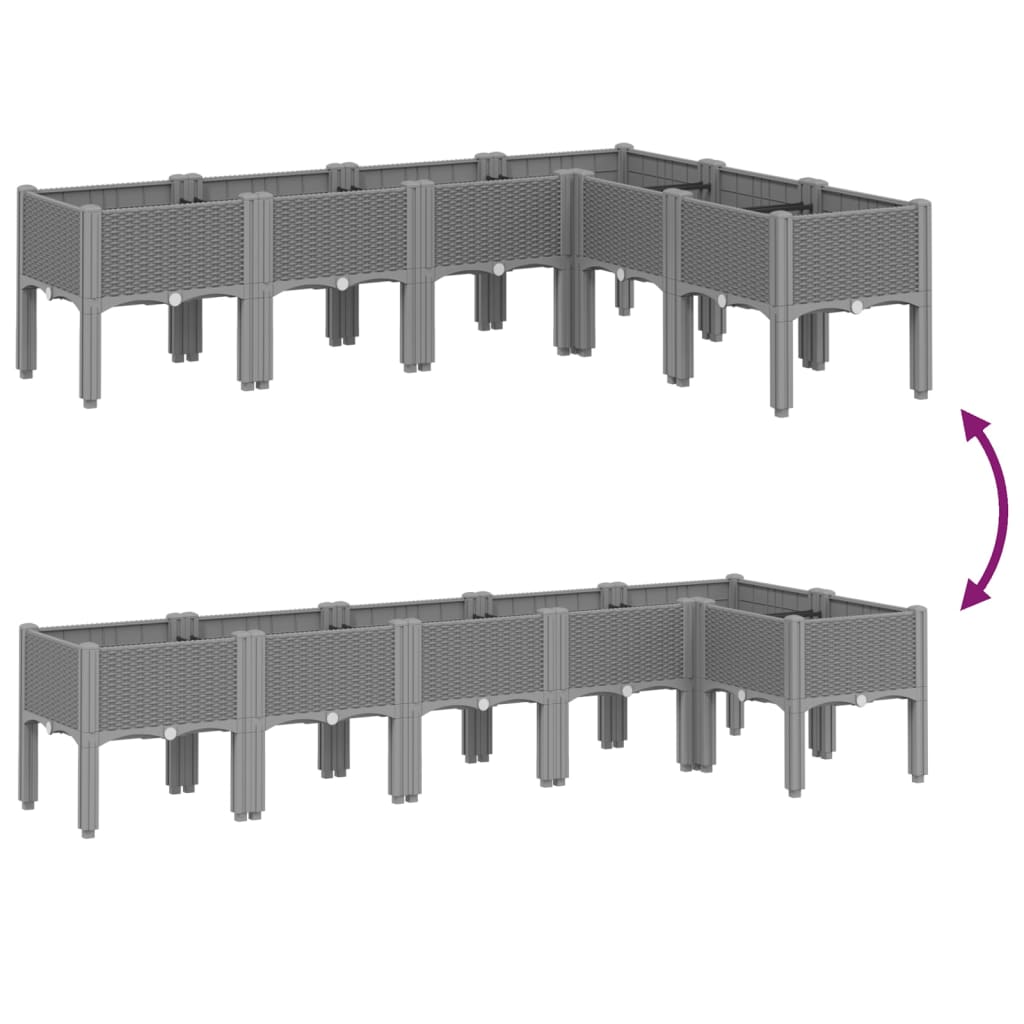 Vaso/floreira de jardim c/ pernas 160x120x42 cm PP cinza-claro