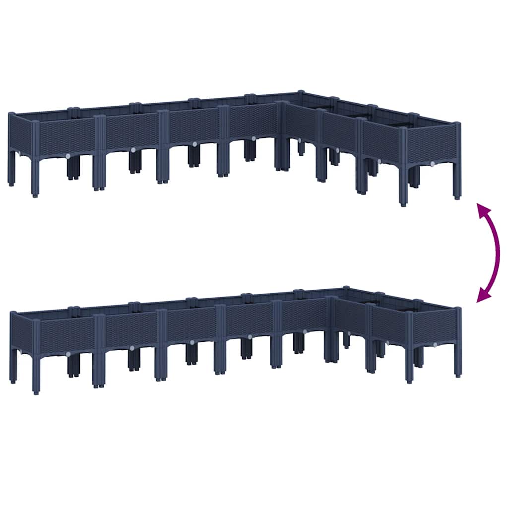 Vaso/floreira de jardim c/ pernas 200x160x42 cm PP cinzento azul