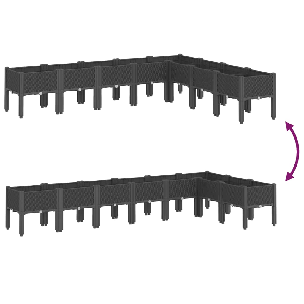 Vaso/floreira de jardim c/ pernas 200x160x42 cm PP preto