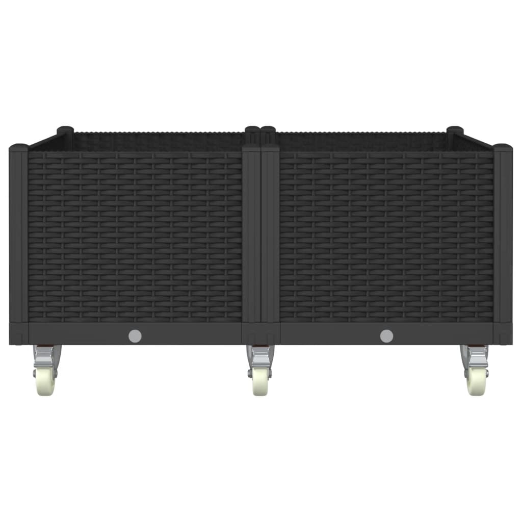 Vaso/floreira de jardim com rodas 100x80x54 cm PP preto