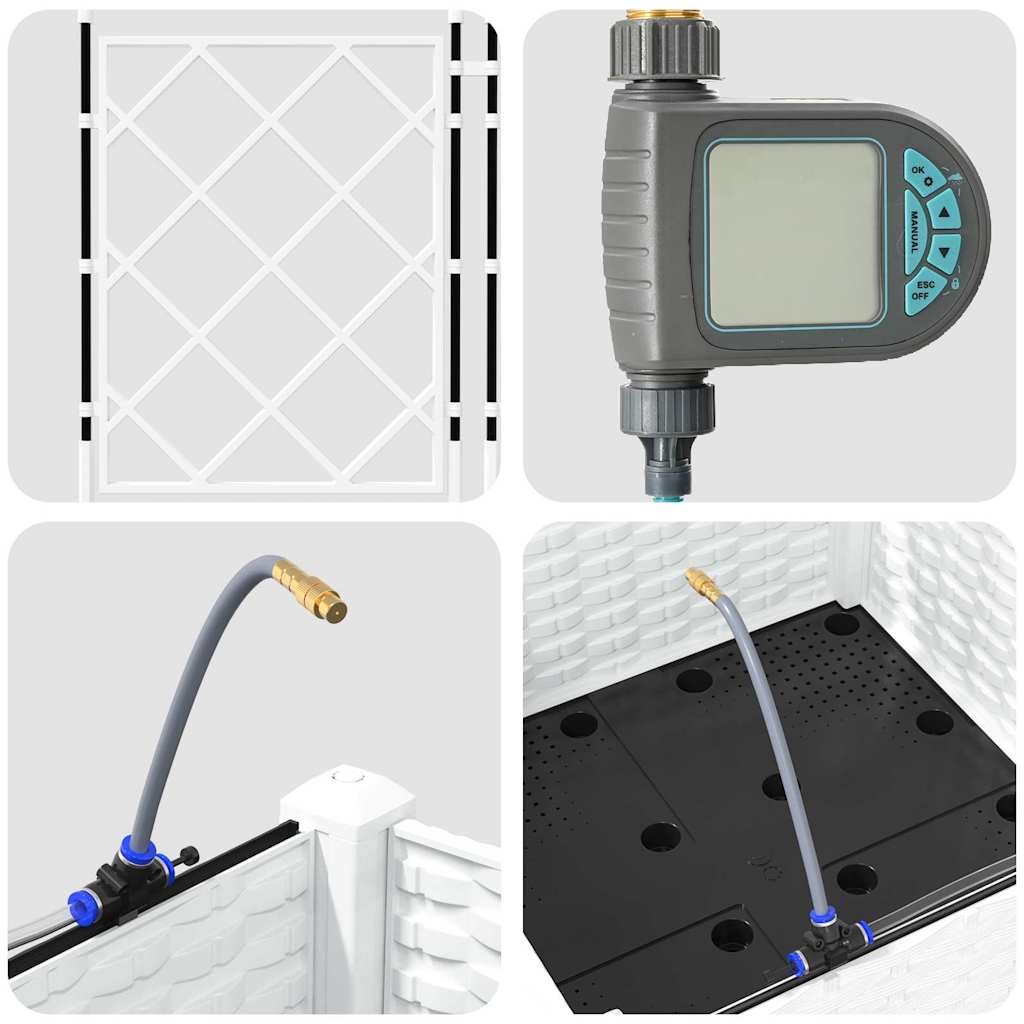 - Sistema de Irrigação Embutido: Equipado com um sistema de irrigação avançado, este vaso de jardim elimina a incerteza do regar. Utilizando canais embutidos, ele distribui água de forma eficiente diretamente para as raízes das plantas, garantindo que elas recebam umidade adequada enquanto reduz o desperdício de água e apoia um crescimento mais saudável.