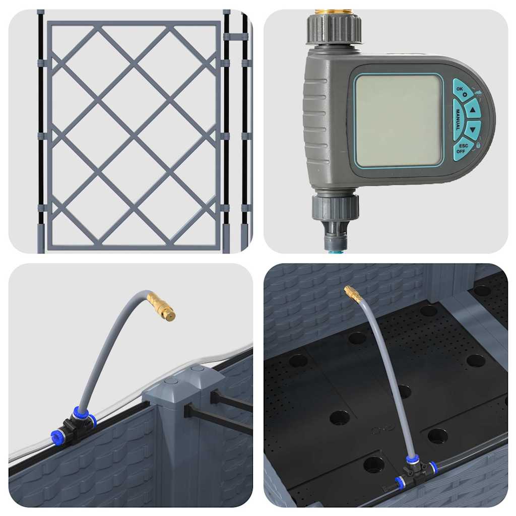 • Sistema de Irrigação Embutido: Equipado com um sistema de irrigação avançado, este vaso de jardim elimina a incerteza do regar. Utilizando canais embutidos, ele distribui água de forma eficiente diretamente para as raízes das plantas, garantindo que elas recebam umidade adequada enquanto reduz o desperdício de água e apoia um crescimento mais saudável.