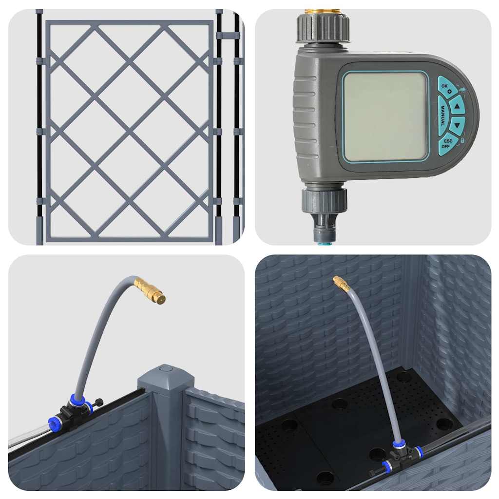 • Sistema de Irrigação Embutido: Equipado com um sistema de irrigação avançado, este vaso de jardim elimina a incerteza do regar. Utilizando canais embutidos, ele distribui água de forma eficiente diretamente para as raízes das plantas, garantindo que elas recebam umidade adequada enquanto reduz o desperdício de água e apoia um crescimento mais saudável.