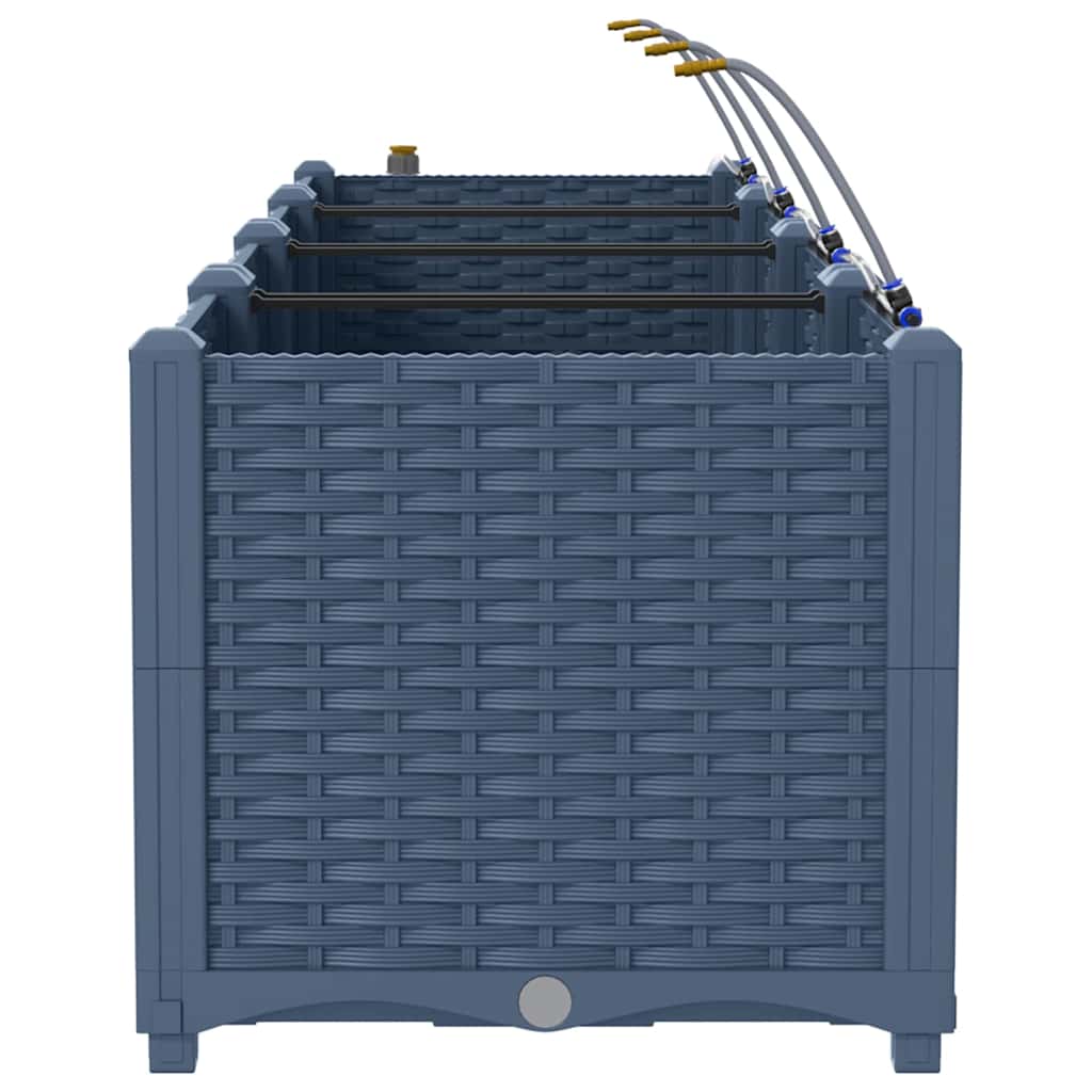 Este vaso de jardim com irrigação é uma solução moderna projetada para os entusiastas do ar livre. Sua forma retangular elegante, combinada com um padrão trançado texturizado, adiciona um toque contemporâneo ao seu jardim ou espaço de terraço. Ideal para plantar uma variedade de flora, este vaso oferece uma base substancial e esteticamente agradável para suas aspirações de jardinagem. Ele se mistura perfeitamente com qualquer decoração de jardim, proporcionando uma opção funcional e estilosa para jardineiros domésticos. O vaso é perfeito para quem deseja aprimorar seu espaço ao ar livre com uma vegetação luxuriante enriquecida por um sistema de irrigação inovador que promove o crescimento saudável das plantas. Seu design elevado oferece uma sofisticação adicional enquanto garante usabilidade prática, transformando este item em uma adição indispensável para aficionados por jardinagem.