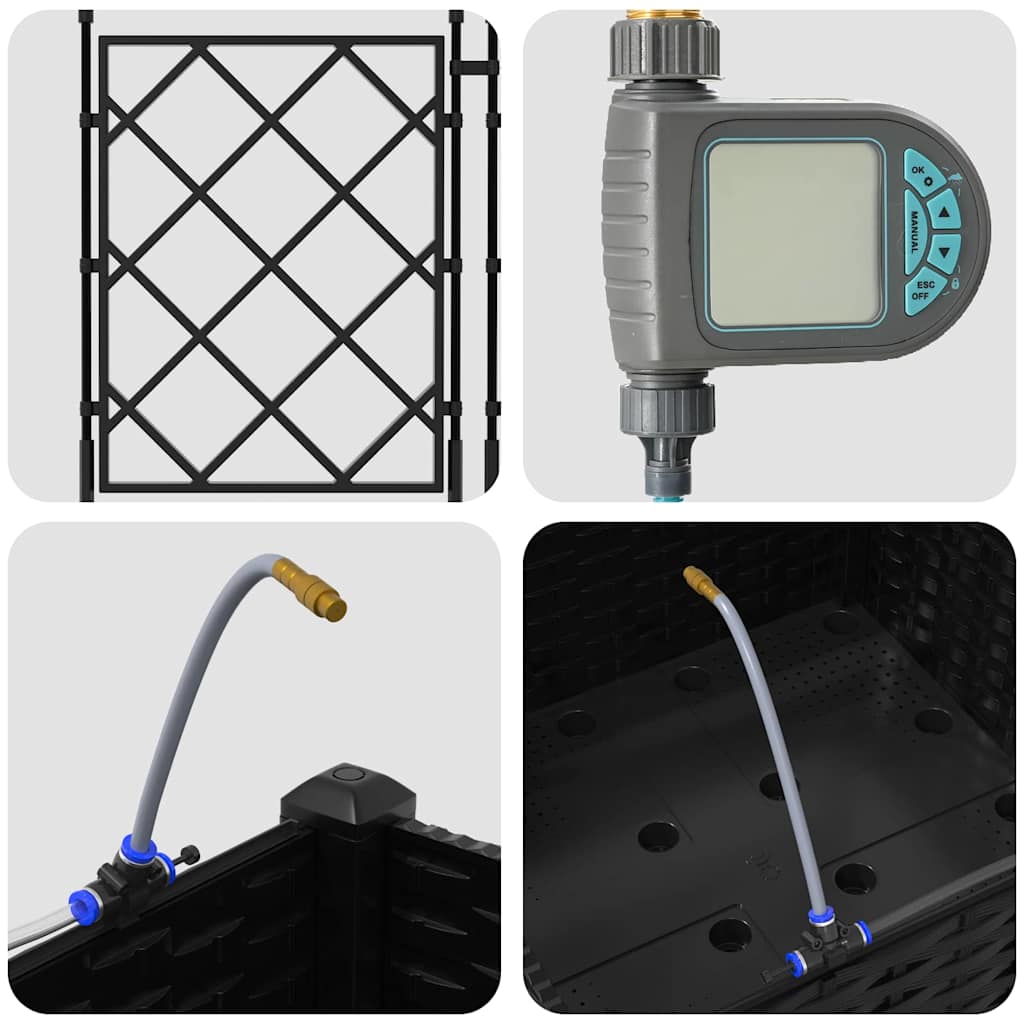 - Sistema de Irrigação Embutido: Equipado com um sistema de irrigação avançado, este vaso de jardim elimina a incerteza do regar. Utilizando canais embutidos, ele distribui água de forma eficiente diretamente para as raízes das plantas, garantindo que elas recebam umidade adequada enquanto reduz o desperdício de água e apoia um crescimento mais saudável.