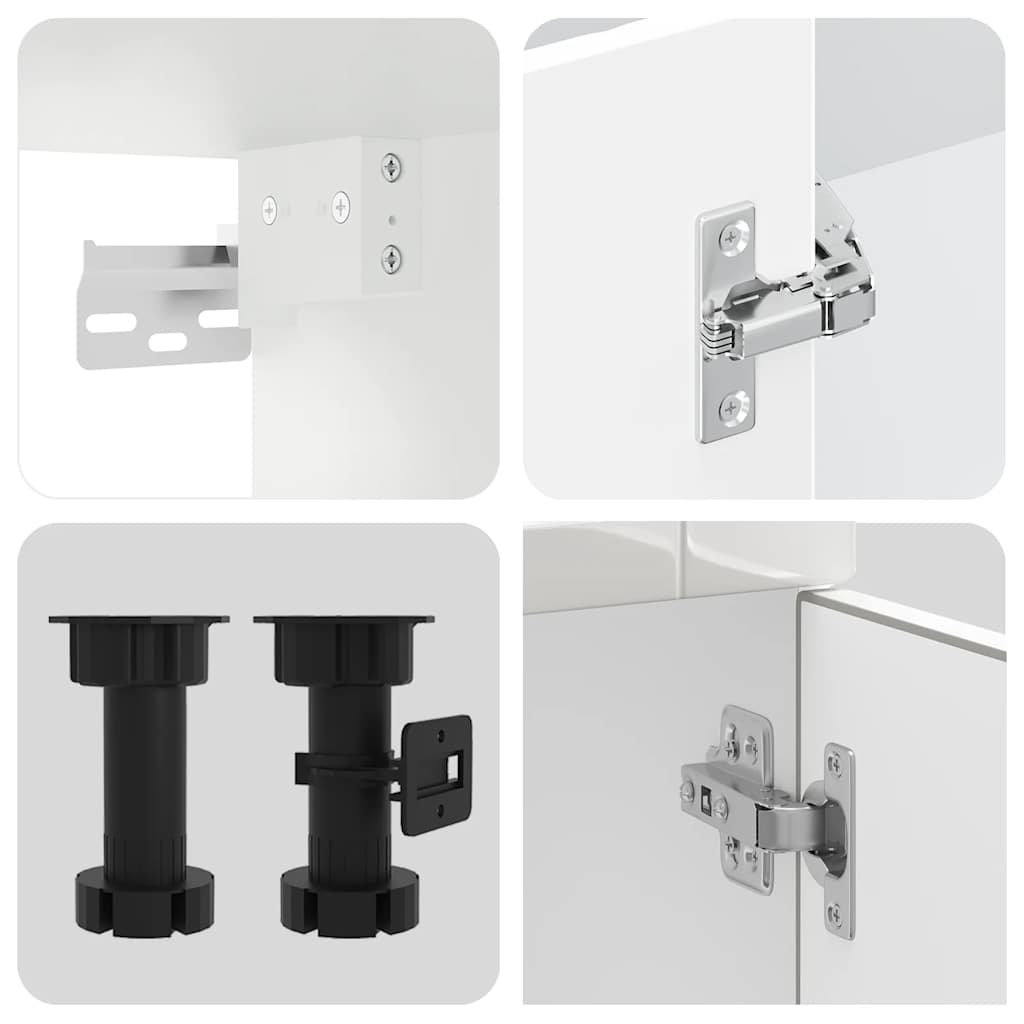 - Pés ajustáveis: Os armários inferiores apresentam pés ajustáveis que podem ser ajustados em altura para se adequar ao layout da sua cozinha.