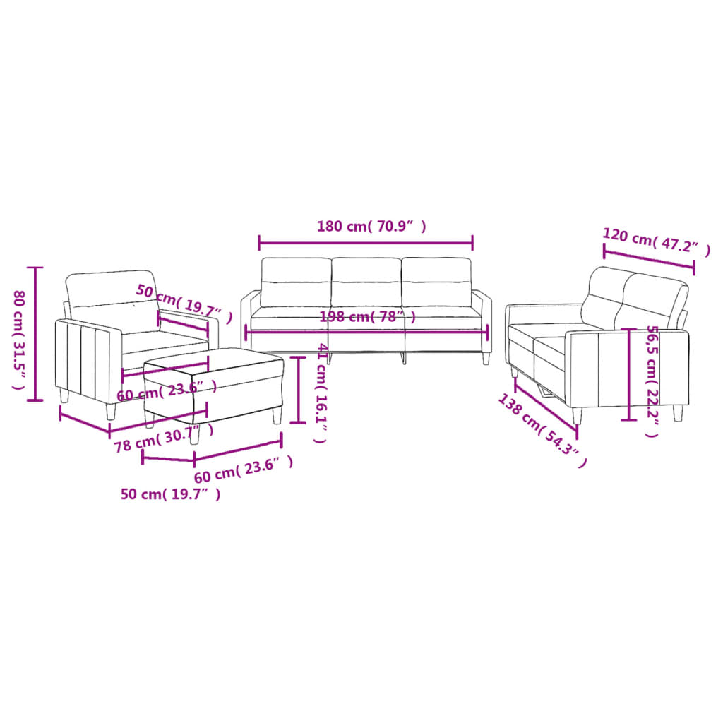 4 pcs conjunto de sofás com almofadões tecido cinzento-claro