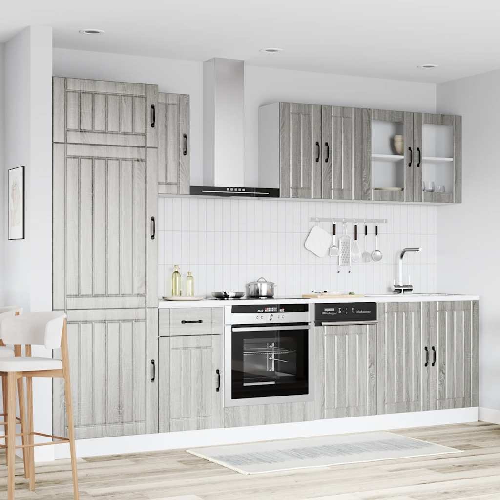 8 peças armário de cozinha conjunto Kalmar cinza sonoma