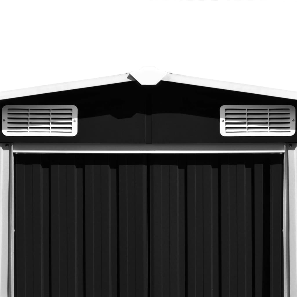 Este abrigo de arrumação possui respiros tanto na parte da frente como na parte de trás, assegurando uma ótima ventilação. As suas portas de correr duplas na frente permitem-lhe entrar e sair facilmente. Graças à construção em aço galvanizado, juntamente com um acabamento revestido a pó, o abrigo para armazenamento de ferramentas é durável e forte.