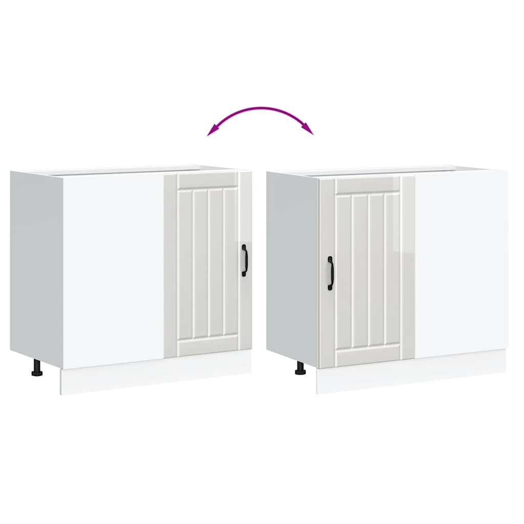 Armário de cozinha baixo "Lucca" em madeira engenheirada branca brilhante